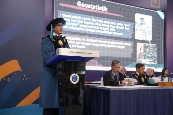 Dalam orasinya, Beliau menyampaikan “Geostatistik Terapan dan Peluang Pengembangannya dalam Evaluasi dan Pemodelan Sumber Daya Bumi”. “Geostatistik dapat didefinisikan sebagai aplikasi metode probabilistik untuk variabel teregional yang menunjukkan fungsi ruang tertentu,” ucapnya.