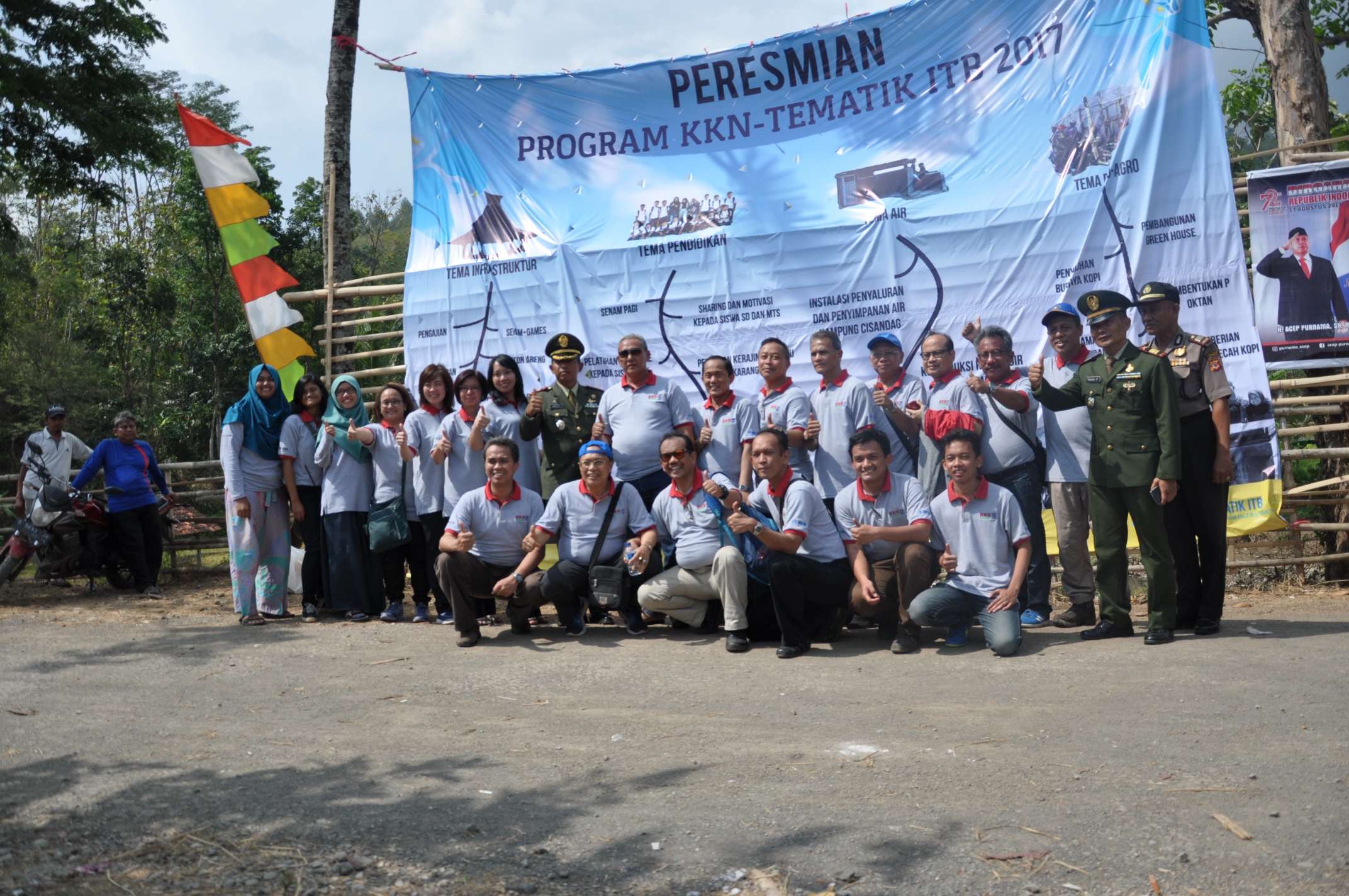 BANDUNG, itb.ac.id - Setelah tuntas diberlangsungkannya proyek dari empat tema utama Kuliah Kerja Nyata Tematik (KKN-T) ITB 2017, yakni tema air, tema pendidikan, tema infrastruktur, dan tema ecoagro, Lembaga Kemahasiswaan (LK) ITB mengadakan peresmian program kerja KKN-T ITB langsung oleh Rektor ITB, Prof. Dr. Ir. Kadarsah Suryadi DEA. Peresmian yang dilaksanakan di pusat Desa Cipakem, Kuningan, pada Minggu (01/10/17) ini pun dihadiri oleh Bupati Kuningan, Dandim 0615 Kuningan, Letkol Inf Arief Hidayat, Kapolsek Lebakwangi, Perwakilan Bank Central Asia (BCA), Ketua LK ITB, dan Wakil Rektor Bidang Akademik ITB.