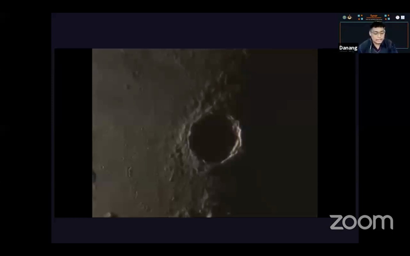 Acara Tenar dilanjutkan dengan penampilan foto dan video pengamatan tentang bulan yang telah disiapkan Himastron ITB. Kawah Copernicus, matahari mengiluminasi bulan, dan kawah ini berada di terminator (perbatasan sisi terang dan sisi gelap bulan). Kawah ini merupakan salah satu kawah paling prominent di bulan karena lebarnya 93 km. Acara dilanjutkan dengan sesi tanya jawab audiens dengan Agus Triono.